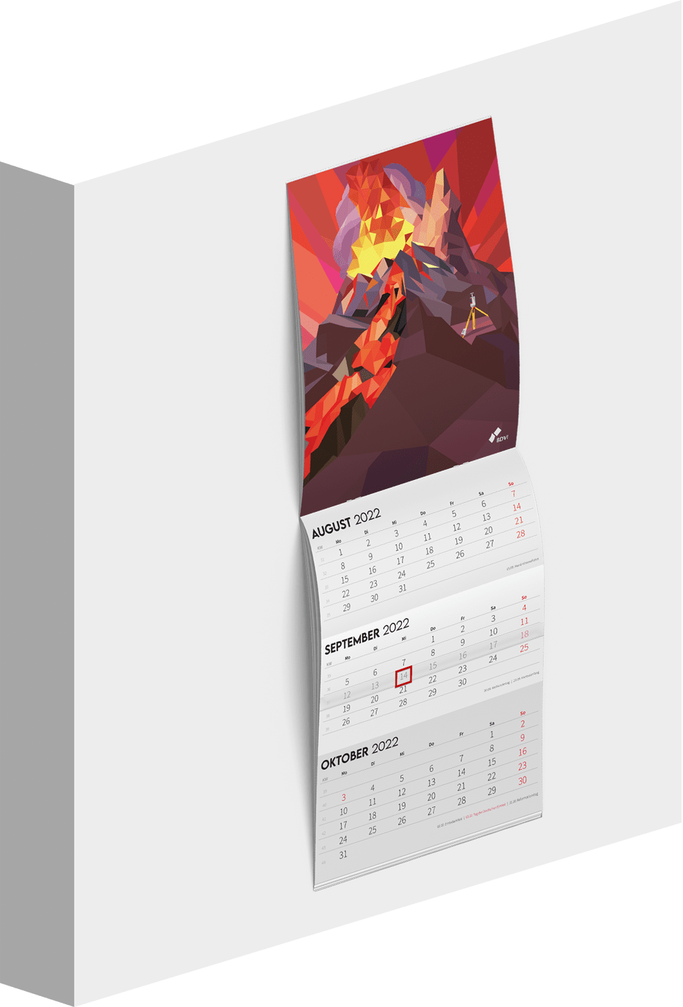 Unser 3-Monatskalender bietet die beste Übersicht, sowohl über vergangene als auch die bevorstehenden Wochen. Dennoch zeigt er Monat für Monat ein neues Motiv. Das aktuelle Tagesdatum können Sie dabei mit einem verschiebbaren Marker kennzeichnen.